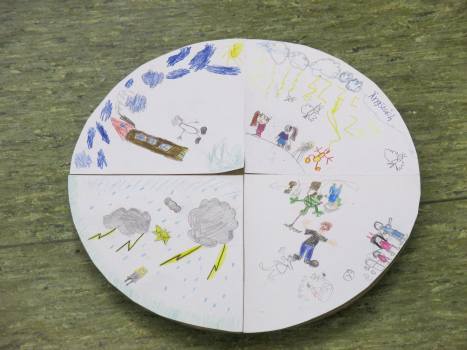 Am Gefühlsrad können die Kinder zeigen, wie sie sich fühlen. Beim Spiel Baum und Raupe lernen die Kinder Achtsamkeit.