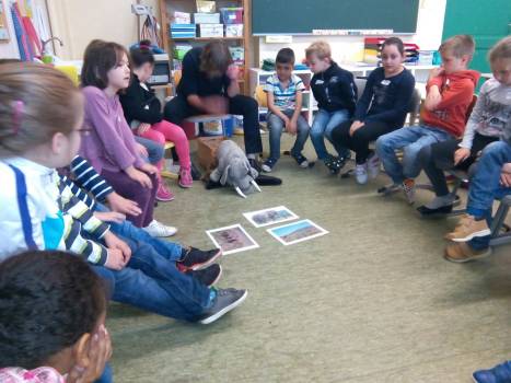 Auch in diesem Schuljahr hatten alle 2. Klassen und inzwischen auch alle 1. Klassen Besuch von dem Affen Cäsar, dem Adler Arno und der Elefantendame Slonni. Frau