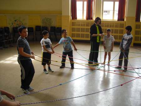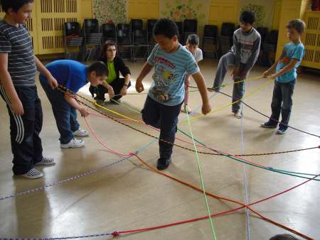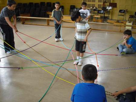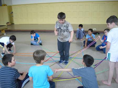 Die neuen Spiele mit dem Seil machen sichtlich Spaß! Oh, wir haben es geschafft, ein großer Stern aus Seilen.