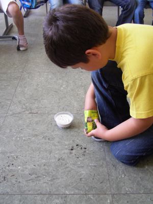 | Das tust du: | Rühre etwas Gips an und fülle ihn in die Plastikbecher. Gib jetzt in die Gipsmasse Löwenzahn- oder Erbsensamen (sie müssen untertauchen!). Lasse den Gips aushärten und halte ihn danach ab und zu feucht. | ||