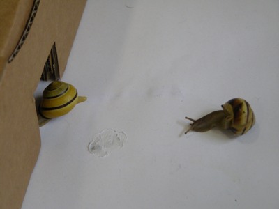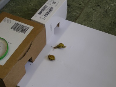 kurzer Zeit bewegen sich die Schnecken auf die Schachtel zu, in der die