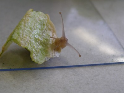 Salatblätter "versteckt" sind. Die Schnecken haben die