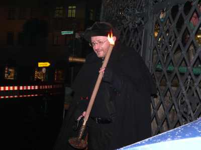 der Hand hielt er eine Fackel, die ca. 90 Minuten brannte. Als erstes