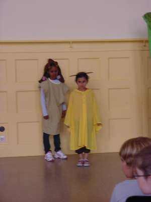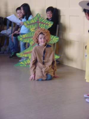 Die Geschichte vom dicken fetten Pfannkuchen begann mit Mehl, Milch und Ei und der Zahl 3... So beginnt das Märchen vom „Dicken, fetten Pfannkuchen“. Mit Instrumenten, Gesang und Theater haben wir, die Klasse 1c, dieses Stück für unsere Eltern und die anderen 1. Klassen aufgeführt. Herr Bartel hat mit uns die Instrumentalbegleitung eingeübt. Der dicke, fette Pfannkuchen ist schnell und schlau und läuft allen, die ihn fressen wollen, einfach davon, zum Beispiel den drei Weiblein, die ihn gebacken haben, dem Hasen, dem Wolf und dem Reh. Dann aber begegnet er vier armen Kindern, die großen Hunger haben. Nun beschließt er, dass diese Kinder ihn als Stärkung verdient haben.