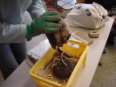 Ohne Handschuhe wäre es eine ganz schön stachelige Angelegenheit. Die Kinder der 2d sind begeistert und schauen genau hin