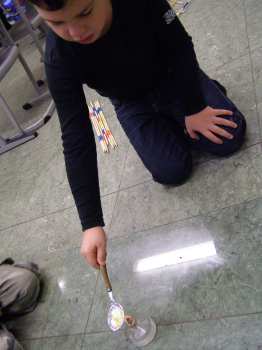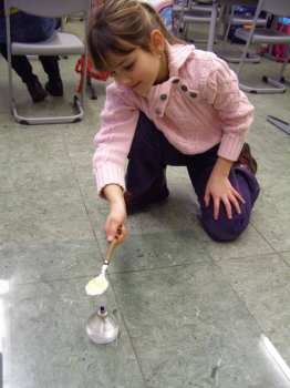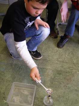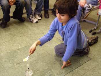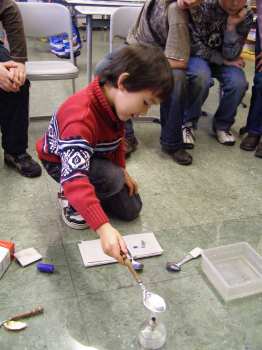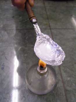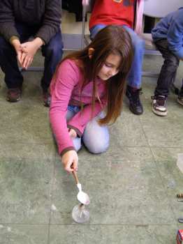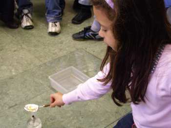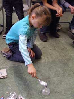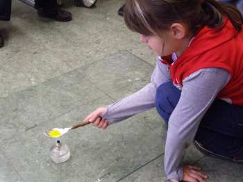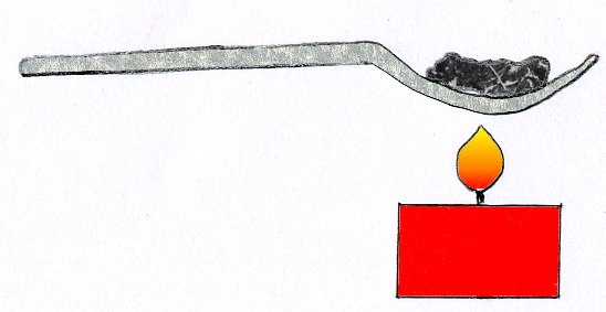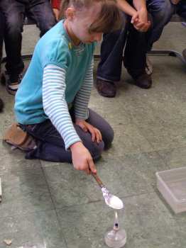 fangen einige der Testmaterialien an zu schmelzen. Es gibt aber auch Materialien, die auf dem heißen Löffel gar nicht schmelzen, z.B. Holz, Kreide oder Papier. |