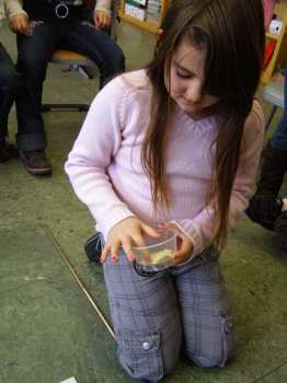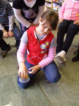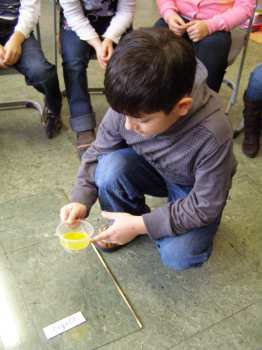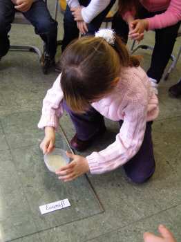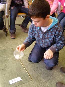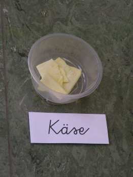 jeweils eines deiner Testmaterialien in den Joghurtbecher und stelle