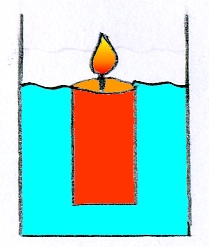 Das Wachs schmilzt wegen der Hitze um den Docht herum und verbrennt. Am Rand der Kerze bleibt das Wachs jedoch fest, weil es vom Wasser drumherum gekühlt wird. Dieser Effekt setzt sich eine Zeit lang immer weiter nach unten fort, bis die Kerze schließlich unter dem Wasserspiegel brennt, das Wasser aber wegen des Wachsrandes nicht in die Kerze laufen kann. Brennt