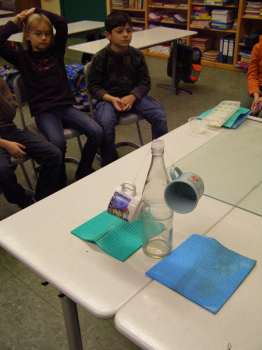 1 Flasche, Eiswürfel, Draht, 2 Tassen zum Beschweren |