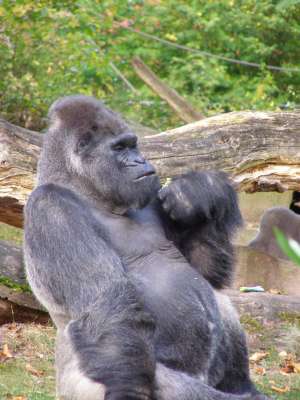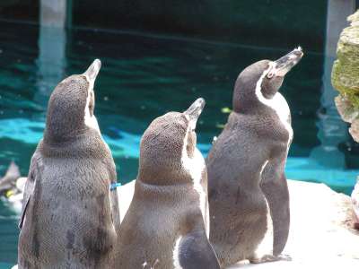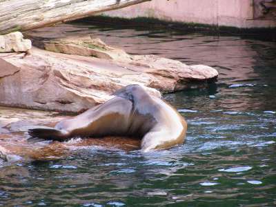 besuchen. Erste Attraktion waren die kleinen Totenkopfäffchen (du kennst ja sicher "Herrn Nielsson" von Pippi Langstrumpf). Dieses kleine Äffchen nimmt gerade sein gesundes Frühstück zu sich: Weiter gings zu den Giraffen, die mit ihren Jungen ebenfalls gerade frühstückten: Richtig lebhaft wurde es dann bei den Pavianen, die wild herumturnten: Der Gorilla nebenan ließ sich auch durch unser Geschrei nicht aus der Ruhe bringen. Er weiß genau, dass er der Herr des Waldes ist: So, jetzt wirds nass - aber leider nicht für die Pinguine. Deren Becken wird nämlich gerade gereinigt. Entsprechend missmutig stehen sie auch am Beckenrand herum: Die Seelöwen und Seehunde dürfen aber zum Glück nach Herzenslust im Wasser herumtollen: