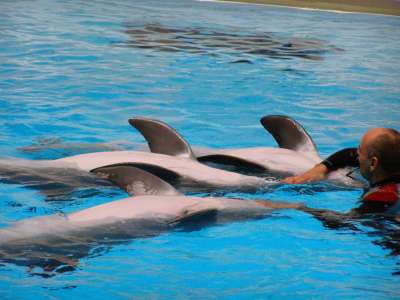 Und dann war es endlich 11 Uhr - Beginn der Vorstellung im Delfinarium.