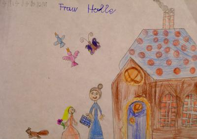 Aber auch für die böse Tochter fand sich schließlich ein mutiges Kind, das sie gespielt hat. Die schwierigste Rolle hatte aber der Erzähler. Diese Bilder haben im Anschluss die Kinder der 2b für Frau Härtl gemalt: ![]() Und ob du's glaubst oder nicht: Märchen sind zwar erfundene Geschichten, aber kaum hatten wir die Geschichte gehört und nachgespielt, fing es draußen zu schneien an und schneite und schneite und schneite... Wenn du nicht mehr genau weißt, was in dem Märchen von Frau Holle alles passiert, kannst du es hier nochmal nachlesen: