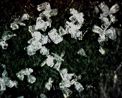 Jetzt kannst du die Flocken mit einer starken Lupe anschauen und du wirst staunen! Wir haben die Schneeflocken mit einem kleinen Mikroskop, das man an den Computer anschließen kann, für dich einmal fotografiert: ![]() ![]() ![]() ![]() ![]() Die ersten Schneeflocken, die wir fotografiert haben, sahen noch aus wie kleine Eiskristalle.