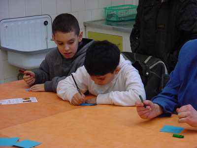 Auf eine Idee der Klassenelternsprecherin Frau Schuster-Brönner trafen sich die Kinder und Eltern der Klasse 2d am Nachmittag zu einer kleinen Neujahrsfeier im Treffpunkt Schulküche.