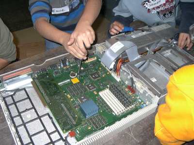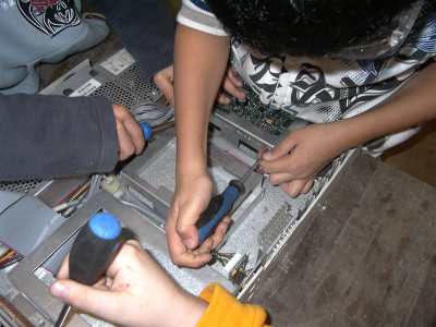 Schraubenziehern und Zangen gearbeitet. Es gab 2 Teams, eine Mädchengruppe und