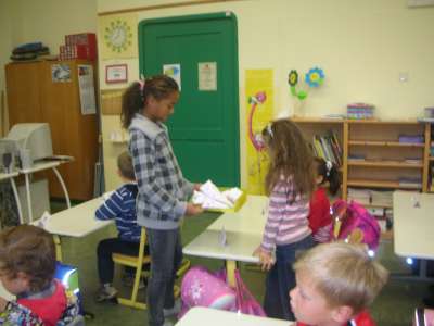 Gleich am 2. Schultag kamen die Paten der Klasse 4a zu uns in die 1b, um sich vorzustellen. Für