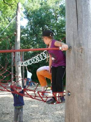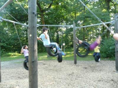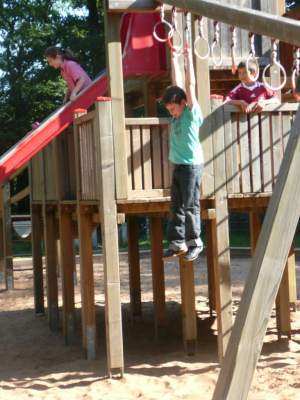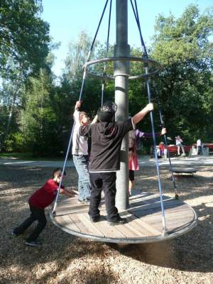 Nach einer Stunde Fußmarsch am Kanal und an Schrebergärten vorbei war es endlich soweit: Wir waren am Spielplatz angekommen. Jetzt gab es kein Halten mehr. Da wurde geschaukelt, balanciert, geklettert, gedreht, gerutscht und gefahren. Immer wieder gab es auf diesem tollen Spielplatz Neues zu entdecken. Deshalb fanden wir es alle schade, dass wir nach einer Stunde schon wieder gehen mussten. Tapfer marschierten die beiden Klassen schließlich wieder in die Schule zurück. Gejammert hat dabei doch keiner, oder? Wir waren uns auf jeden Fall einig: Der Spielplatz in Eibach ist immer einen Besuch wert! Fotos © 2011 C. Schwegler / Text: S. Reitzner-Kohler |
