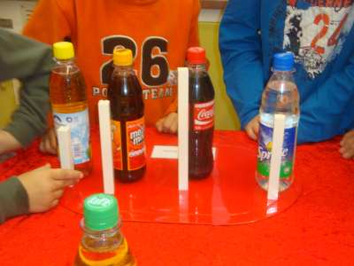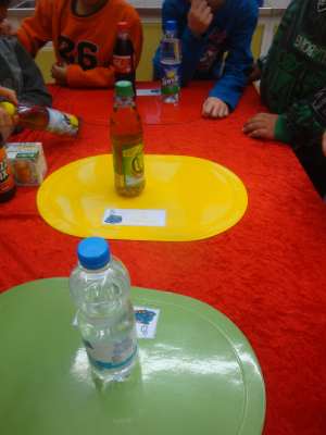An der 3. Station erfuhren sie dann wie viele Stücke Würfelzucker in verschiedenen Getränken stecken. Cola sollte man lieber gar nicht trinken! Mit 18 Stücken Zucker ist Cola das ungesündeste Getränk. Selbstverständlich sollten wir aber täglich viel Wasser oder ungesüßten Tee trinken. Darin ist nämlich gar kein Zucker.