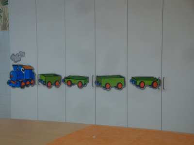 Nach der Stationenarbeit wurde nun die kleine Lok, die anfangs noch ganz leer war, mit Lebensmitteln befüllt. Wir lernten, dass man täglich sehr viel Obst und Gemüse, Getreideprodukte und Wasser zu sich nehmen soll.