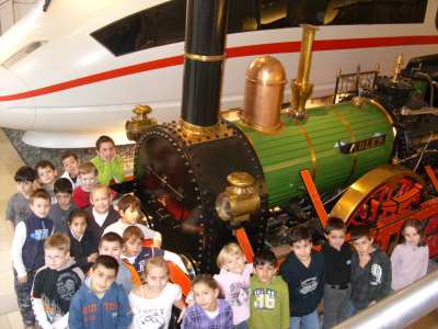 Am 25.11.2010 machten wir uns auf den Weg in das Verkehrsmuseum in der Nürnberger Innenstadt. Dort erzählte und zeigte uns eine Führerin viele spannende Dinge rund um die Eisenbahn. Wir erfuhren, dass der Adler die erste Lokomotive war, die in Deutschland auf Schienen fuhr. Oder dass der ICE heute zehnmal schneller fährt als der Adler damals. Oder dass es für König Ludwig II. einen eigenen Königswaggon gab. Oder dass ein Kohlenwagen auch Tender heißt .... Nach so viel angestrengtem Zuhören und Anschauen verbrachten wir die letzte halbe Stunde in der Erlebniswelt des Museums. Dort gab es für uns Kinder einen riesigen Spielplatz. Der eine wurde dort zum Lokführer, der andere verstellte Weichen, der dritte spielte mit der Modelleisenbahn. So waren wir alle beschäftigt und fanden es schade, als unsere Zeit im Museum zu Ende ging.