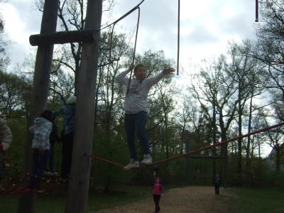 Dann aber stürmten wir Klettergerüst, Drehscheibe, Schaukel und Fußballplatz.