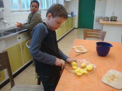 Die Klasse 2d kocht Gemüsesuppe