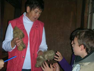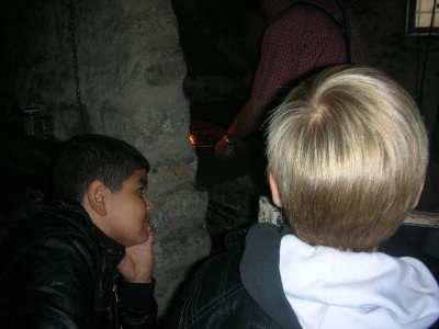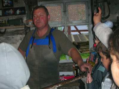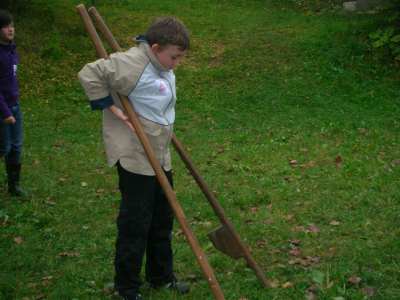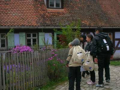 Am 7.Oktober machten die Klasse 4a und 4b einen Ausflug ins Freilandmuseum nach Bad Windsheim. Wir wollten mehr über das Leben der Menschen früher erfahren. Schon während der gemütlichen Zugfahrt – für einige Kinder die erste Zugfahrt ihres Lebens – war die Stimmung bestens. Einige lasen sogar in der Zeitung über die letztenVorbereitungen zum Länderspiel Deutschland : Türkei. Nach einer kurzen Einführung in das Museumsgelände machten wir uns in 3 Kleingruppen auf dem Weg zu den verschiedenen Stationen. Wir durften selbst nach alter Art Butter aus Sahne herstellen und leckere Butterbrote zu frischer Milch essen. In der Mühle mahlten wir mit eigenen Händen Körmner zu Mehl. Ein Herr erklärte uns, wie die alte Mühle gearbeitet hatte. Wir lauschten dem Plätschern des Baches, der die Mühlräder antrieb. Anschließend walzten wir Teig zu flachen Flaten, die dann auf einem alten Herd mit offenem Feuer gebacken wurden. Alte Spielgeräte wie Stelzen, Säcke zum Hüpfen und Reifen aus Holz lagen zum Ausprobieren bereit. Beim Schmied war´s besonders spannend. Wer traut sich schon so einfach, mit so heißem Eisen zu arbeiten! Auch Haustiere aus alter Zeit, wie Gänse, Hühner, Ziegen, Schweine und Kühe, die mit den Menschen oft im selben Haus lebten, konnten wir bewundern. Zum Schluss führte uns eine Dame einen alten Webstuhl vor und zeigte, wie aus Hanffasern Stoffe gewebt werden. Ein toller Ausflug! Zum Abschluss gab´s für alle ein Eis und dann ging´s zurück zum Zug nach Nürnberg.