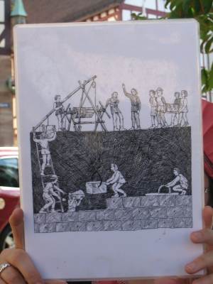 wir große Mauersteine, die alle in der Mitte ein Loch hatten. Wir erfuhren und
