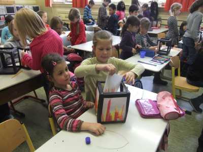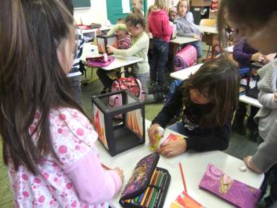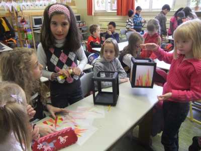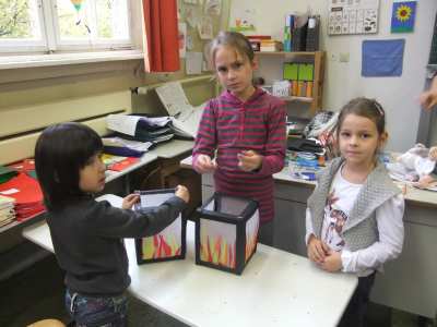 Am Donnerstag, den 27.10.2011 trafen wir uns dann wieder zum gemeinsamen Laternen basteln. Für unseren Laternenzug am 10.11.2011 stellten wir leuchtende „Feuerlaternen“ her. Das Zusammenkleben war gar nicht so einfach. Die Kinder der Klasse 4c halfen dabei ihren Patenkindern aus dem 1. Schuljahr eifrig! Vielen Dank dafür!