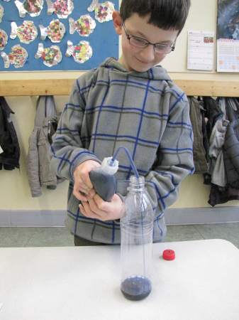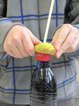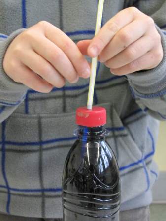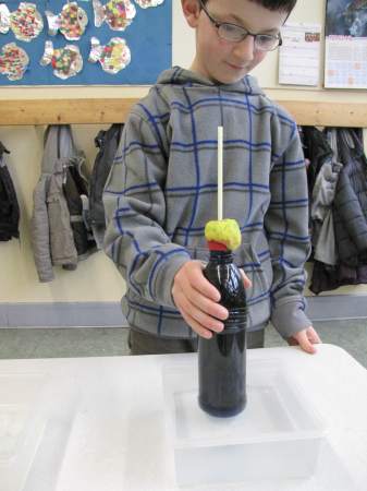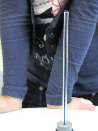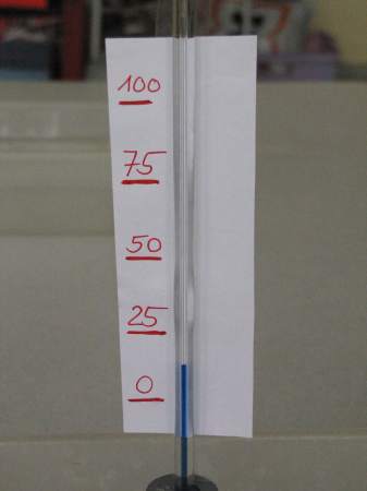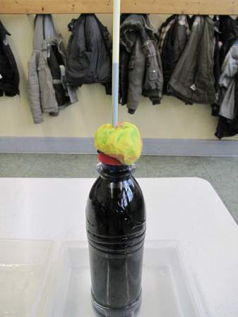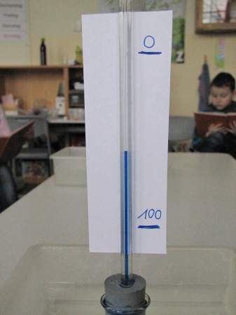 Aber wie kalt genau ist es denn eigentlich? Jetzt bräuchte man ein Thermometer... Weißt du eigentlich, wie so ein Thermometer funktioniert? Wir haben es ausprobiert: Ein kleiner Erlmeyer-Glaskolben, 1 Glasröhrchen mit Gummistopfen, gefärbtes Wasser und 2 Schalen mit heißem und kalten Wasser genügen als Material, um ein funktionsfähiges Thermometer zu bauen. ![]() Zuerst füllst du das gefärbte Wasser in den Glaskolben. ![]() Das Glasröhrchen steckst du mit dem Gummistopfen fest auf das Glasgefäß. ![]() Und schon ist das Thermometer fertig. Glaubst du nicht? Du musst das Gefäß nur in heißes Wasser stellen und ein wenig warten, schon siehst du, wie die gefärbte Flüssigkeit im Röhrchen nach oben steigt. ![]() ![]() Wenn du anschließend das Gefäß in kaltes Wasser tauchst, sinkt die Flüssigkeit im Röhrchen wieder. ![]() Wie das geht? Wasser dehnt sich aus, wenn es erwärmt wird. Es kann aber aus dem geschlossenen Gefäß nur an einer Stelle heraus, nämlich durch das Glasröhrchen nach oben. Bei Kälte hingegen zieht sich das Wasser zusammen, es wird immer "weniger" und bald ist nicht mehr genug da, dass es das Röhrchen bis oben hin füllt. So ein Thermometer kannst du übrigens ganz leicht zu Hause nachbauen. Du brauchst dazu nur eine alte (möglichst kleine) Getränkeflasche aus Kunststoff, einen Strohhalm, Knetmasse und gefärbtes Wasser (z.B. mit Wasserfarben; du kannst aber auch Cola oder andere bunte Flüssigkeiten verwenden). ![]() Das gefärbte Wasser füllst du bis oben hin in die Flasche, steckst den Strohhalm in die Öffnung (entweder direkt in den Flaschenhals oder durch ein in den Flaschendeckel gebohrtes Loch) und dichtest den Flaschenhals gut mit Knetmasse ab (pass aber auf, dass du den Strohhalm nicht zerquetscht, sonst kann keine Flüssigkeit mehr hindurchfließen). ![]() ![]() ![]() ![]() ![]() Fertig ist dein selbstgebautes Thermometer. Wenn du jetzt die Flasche in heißes Wasser stellst, steigt die Flüssigkeit im Strohhalm nach oben (es dauert etwas, weil in der Flasche ja recht viel Flüssigkeit ist, die sich erwärmen muss). ![]() Stellst du die Flasche in Eiswasser, sinkt die Flüssigkeit im Strohhalm wieder nach unten. ![]() Und woher weiß man jetzt, wie viel Grad Wärme oder Kälte es hat? Da kommt ein Herr Celsius ins Spiel. Der lebte vor fast 300 Jahren in Schweden und wollte Temperaturen wie wir genau messen. Es gab damals zwar auch schon Thermometer, aber ohne Skala. Herr Celsius hatte eine gute Idee. Er stellte sein Thermometer in kochendes Wasser und machte an der Stelle einen Strich, an der die Flüssigkeitssäule stehen blieb. ![]() ![]() Anschließend stellte er sein Thermometer in Eiswasser und machte wieder einen Strich. ![]() ![]() Nun hatte er 2 Fixpunkte, die er mit 0 Grad (kochendes Wasser, auch Siedepunkt genannt) und 100 Grad (Eiswasser, auch Gefrierpunkt genannt) bezeichnete. ![]() Dazwischen brachte er 99 gleichmäßige Striche an, so dass seine Skala jetzt in 100 gleiche Teile eingeteilt war. Jetzt konnte man endlich die Temperatur aufs Grad genau bestimmen. Zu Ehren des Herrn Celsius heißt diese Gradeinteilung bis heute "Grad Celsius" (es gibt übrigens auch noch andere Gradeinteilungen, aber die werden im Alltag bei uns nicht verwendet). Ist dir etwas aufgefallen? Na klar, Eiswasser hat doch nicht eine Temperatur von 100° Celsius und kochendes Wasser von 0° Celsius. Stimmt. Aber Herr Celsius hat die Skala so gemacht! Das ist wirklich so gewesen, nur hat sich ein anderer Herr ein paar Jahre später gedacht, dass es doch merkwürdig sei, dass die Temperatur immer niedriger wird, wenn es heißer ist und er hat die Skala kurzerhand umgedreht. Seitdem lesen wir auf dem Thermometer bei Eiswasser 0° Celsius und bei kochendem Wasser 100° Celsius ab. ![]() ![]() Heute gibt es natürlich nicht nur solche Flüssigkeitsthermometer, wie schon Herr Celsius eines gebaut hat, sondern auch Zeigerthermometer, elektrische und sogar Infrarotthermometer, ja sogar ganze Wetterstationen, an denen man noch viel mehr Wetterdaten als nur die Temperatur ablesen kann. ![]() ![]() ![]() ![]() ![]() Und was ist hier passiert? Die Flasche sieht ja richtig zerquetscht aus! ![]() Wenn du den Text gut gelesen hast, müsstest du es eigentlich herausbekommen. Ein Tipp: Die Flasche ist bei Kälte draußen gelegen und war fest verschlossen. Fotos © 2012 D. Härtl |