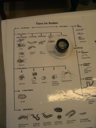 Danach lernten wir, warum es so wichtig ist, den Müll richtig zu trennen: Wir können wichtige Wertstoffe wieder verwenden (recyceln). Nun erklärte jede Gruppe den anderen Kindern, was sie herausgefunden hatte. Später teilten wir uns in 2 Gruppen auf. Die Bodengruppe untersuchte das Leben im Boden mit Petrischale, Lupe und Mikroskop. Die Computergruppe zerlegte alte Computer in ihre Einzelteile. Jeder von uns schrieb einen Steckbrief über das Tier/Computerteil, das er genauer erforscht hatte. Zum Schluss durften wir zusehen, wie das Chamäleon mit Heuschrecken gefüttert wurde.