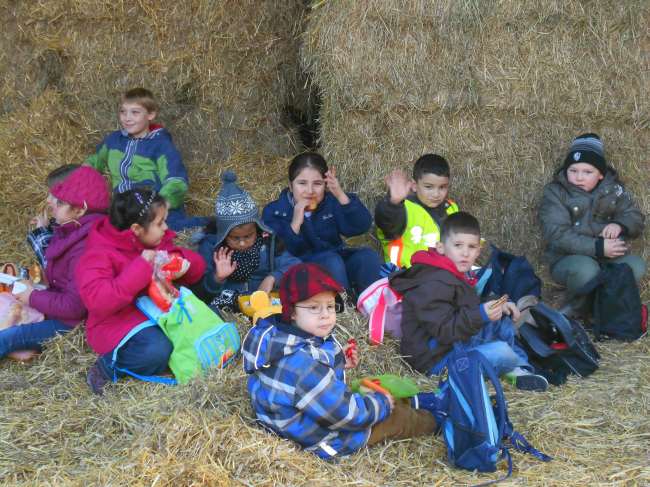 durften die Kinder ausgiebig im Stroh toben und springen, Stroh herumwerfen,
