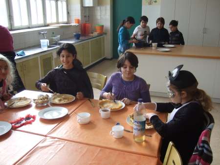 Am Tag vor den Faschingsferien war Pfannkuchentag in der 4c! In England ist der Pancake Day der Faschingsdienstag, da es der letzte Tag vor der Fastenzeit ist und man deswegen alle leckeren Lebensmittel, auf die man in der Fastenzeit verzichten soll, hier nochmal essen darf. Besonders Pfannkuchen!!! Und so geht’s: Mix a pancake, stir a pancake, pop it in the pan. Fry a pancake, toss a pancake catch it if you can. Vielen Dank an die Mama, die uns tatkräftig unterstützte!