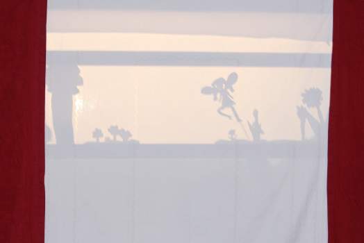 Vorführung in die Aula ein. Zuerst führten wir das Schattentheater vor, das wir