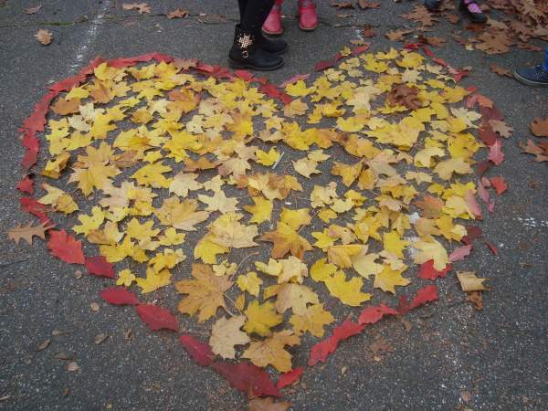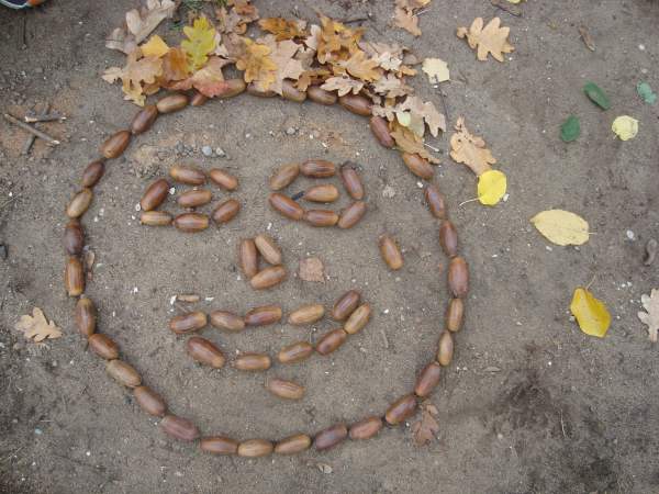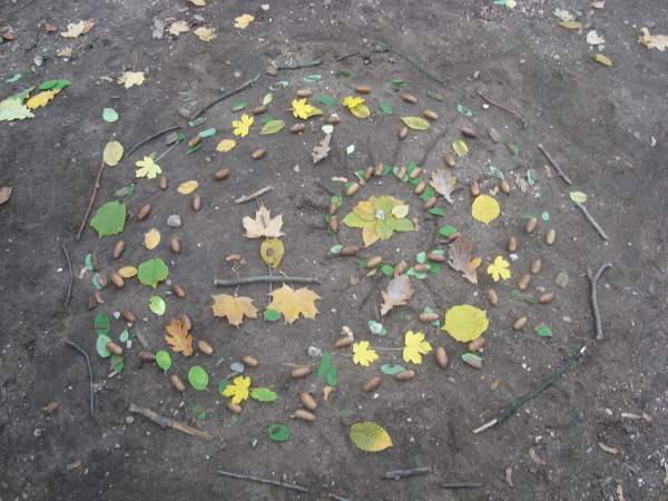raus in den Pausenhof und haben auch mit Naturmaterialien eigene Bilder