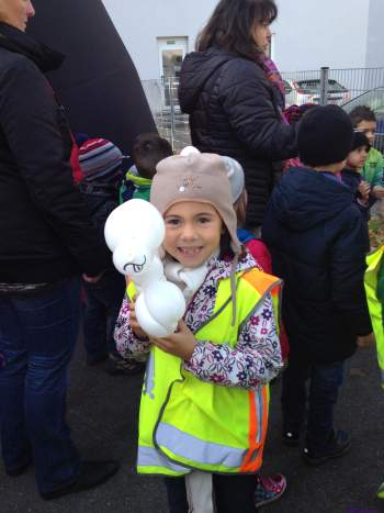 verdrehte Wörter und, und, und .... . Am Ende der Vorstellung bekam jedes Kind eine Tüte mit frischem Obst, einem Getränk und einer Breze geschenkt. Wir sagen Danke!