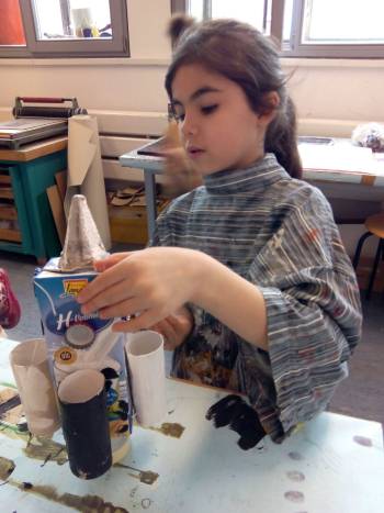 Recyclingmaterial gesammelt, das wir nun zusammengeklebt und bemalt haben.