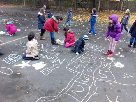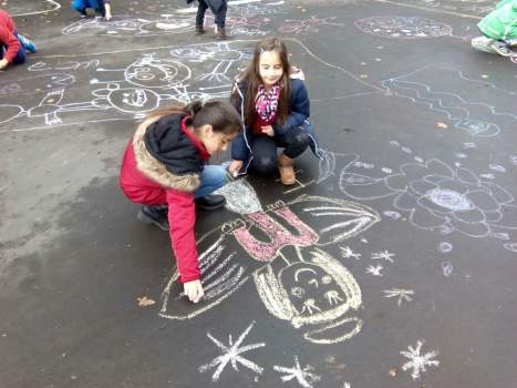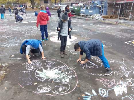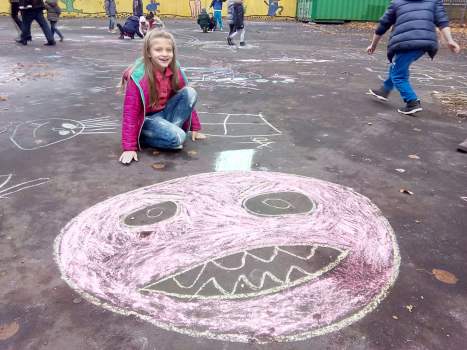 Am Montag, den 19.10.15, hat die Klasse 1d mit ihrer Patenklasse 3b den Pausenhof mit Straßenkreide bemalt. Die Kinder hatten gemeinsam viel Spaß und es entstanden tolle Bilder.