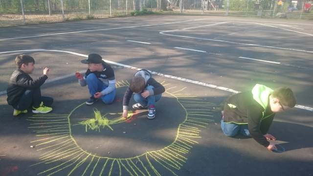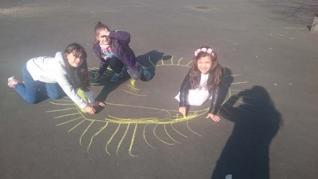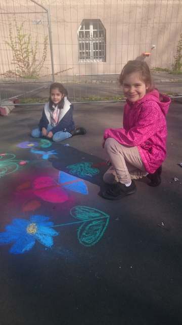aus der Klasse 3a Frühlingsbilder auf den Schulhof. Es war ein