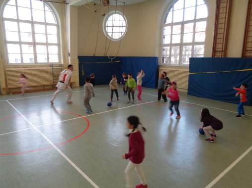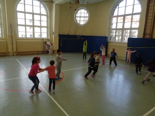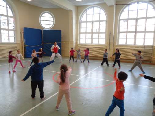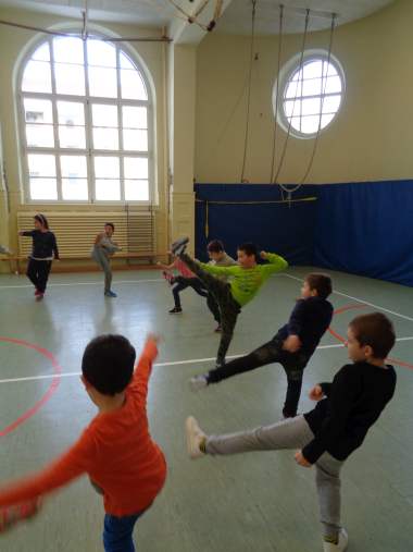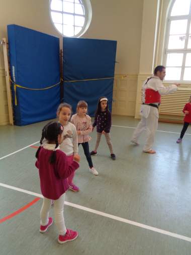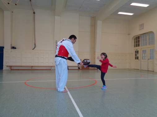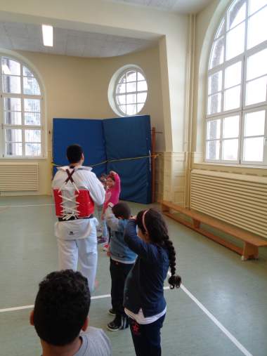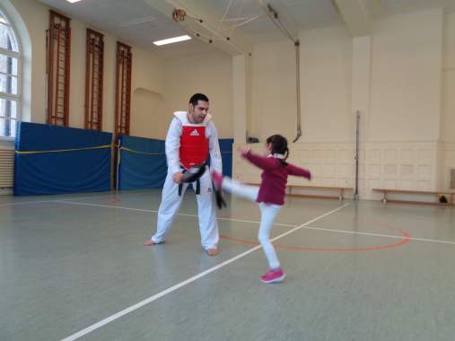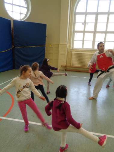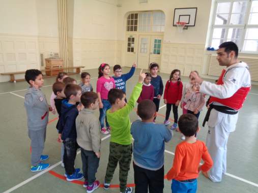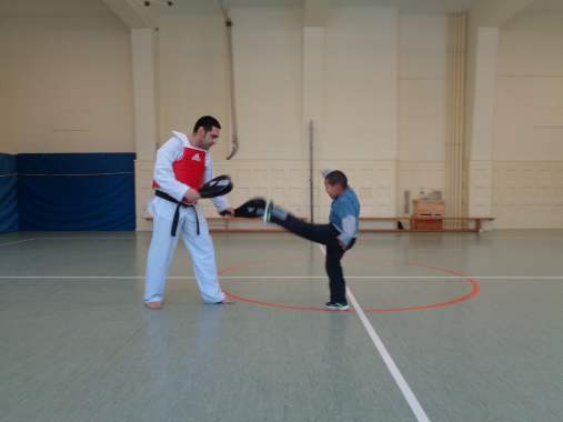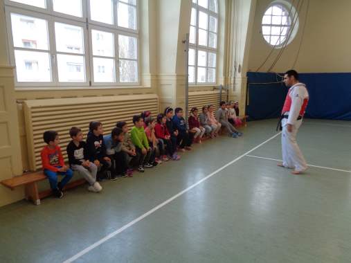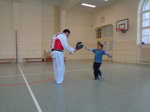 Nach einem kurzen Aufwärmen zeigte uns Herr Emtekin ein paar einfache Grundübungen des Taekwondo.