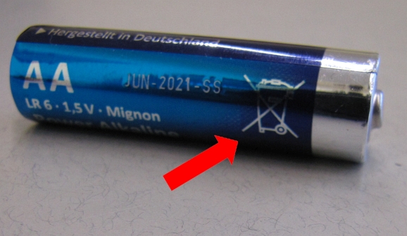 Mülltonnensymbol zum Beispiel auf Batterien erkennen: