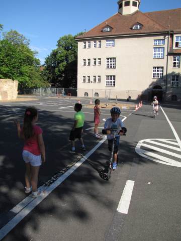 In den letzten beiden Wochen vor den Sommerferien haben die 2. Klassen auf dem Schulhof Roller fahren trainiert.