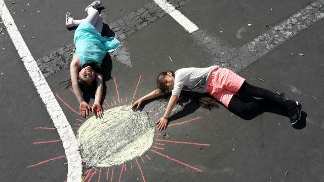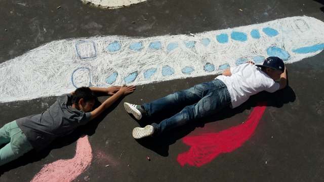 Kunstunterricht fand bei der Klasse 4a diese Woche im Freien statt,