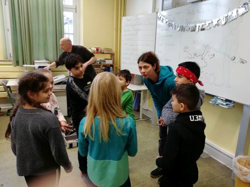 zusammen mit der Regisseurin ins Klassenzimmer der 4c. Es war eine Begegnung