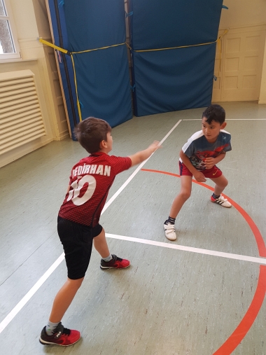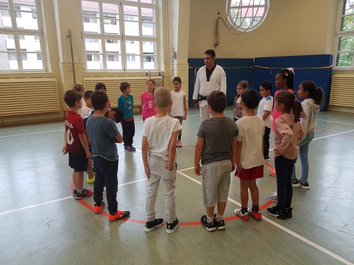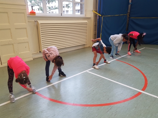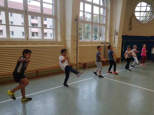 Nach einem kurzen Aufwärmen zeigte uns Herr Emtekin ein paar einfache Grundübungen des Taekwondo.