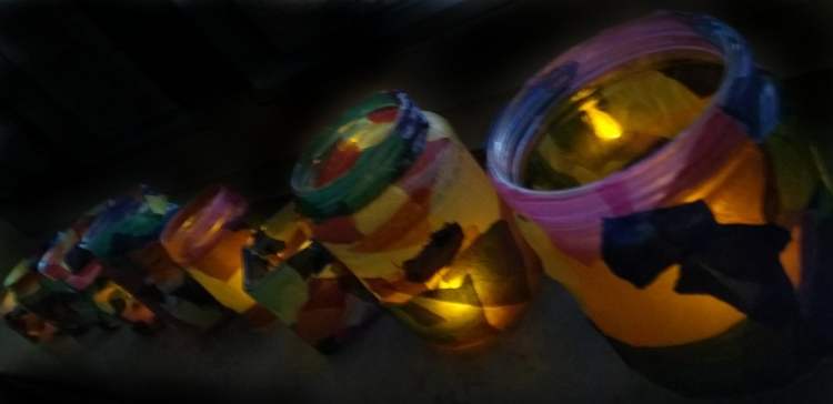 Nachdem wir für den Nikolaus noch ein kleines Lied gesungen haben, begannen wir mit dem Basteln unserer Elmar-Windlichter. Die Anleitung dazu hatten wir aus unserem Adventskalender. Mit der Hilfe von 15 Eltern, die extra zu uns in die Klasse gekommen waren, fiel es uns nicht schwer die schönen Windlichter zu gestalten. Kein Windlicht gleicht dem anderen, aber jedes leuchtet besonders bunt. So passen die Windlichter perfekt zu den Elmar-Geschichten und unserer Klasse. ![]() Fotos © 2019 ms |