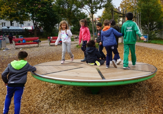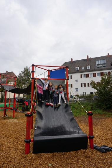 | Leider mussten wir unseren Herbstausflug wegen des Wetters ein paar Mal verschieben, aber am 16. Oktober war es endlich so weit. Gemeinsam mit unseren Klassenlehrern, Frau Schirmer und 2 Praktikanten gingen wir zum Spielplatz in der Bunsenstraße. Dort hatten wir viel Spaß an den verschiedenen Geräten: Fotos © 2019 dh |