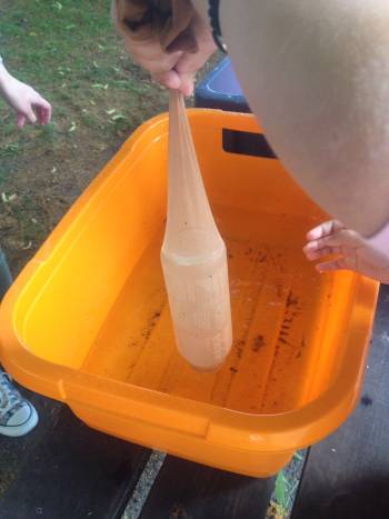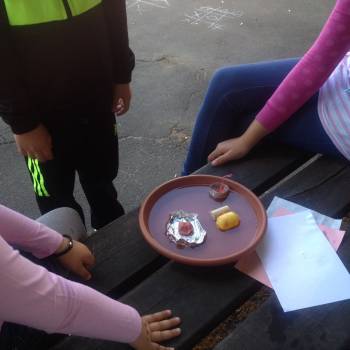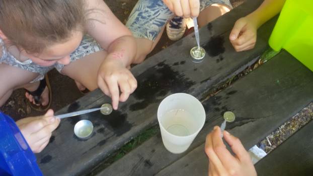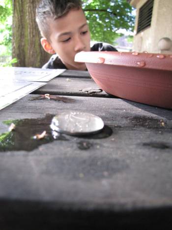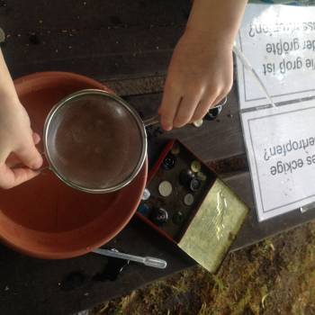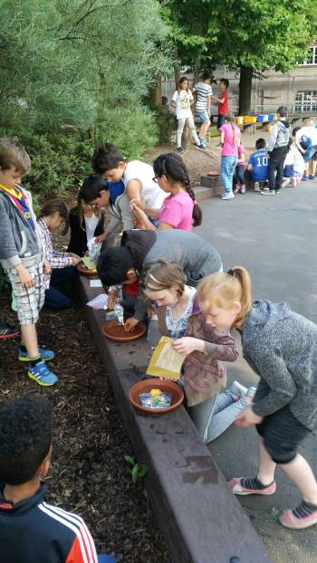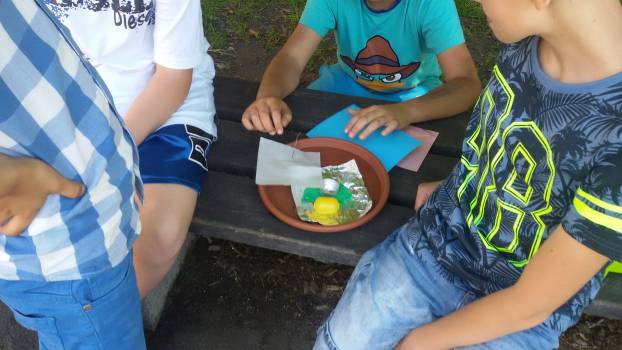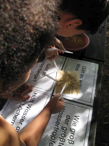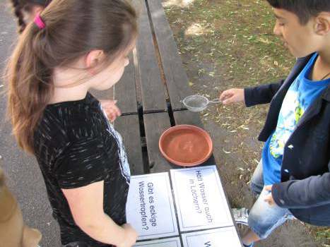 Besonders spannend waren die Versuche, ob in einem umgedrehten Glas das Wasser bleibt, wenn der Boden nur mit einem Bierdeckel, Papier, Nylonstrumpf oder Aluminiumfolie abgedeckt wird. Besonderer Dank gilt den Schülern der Klasse 4a, die als Experten die Stationen begleitet haben! Sicherlich hatten alle Schüler viel Spaß und hoffentlich konnten wir bei einigen Kindern die Lust und Neugierde zum Weiterforschen wecken!