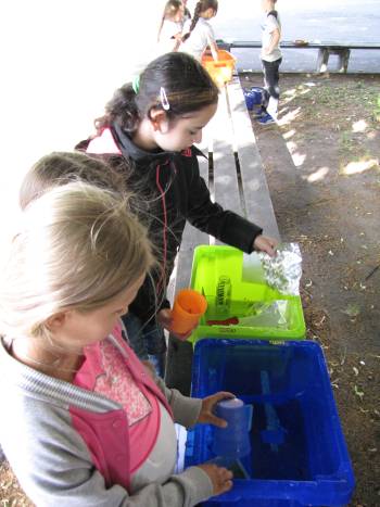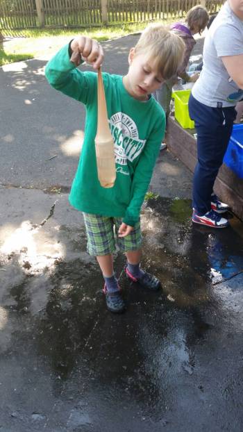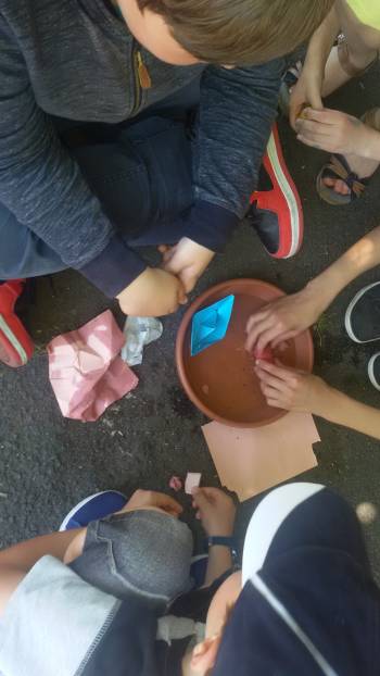In dieser Woche durften alle Klassen der Schule das „Amberger Wasserlabor“ auf dem Schulhof besuchen und ihre experimentelle Geschicklichkeit unter Beweis stellen. Als Erstes probierten alle Kinder aus, was „schwimmt und sinkt“. Anschließend wurde folgenden Forscherfragen nachgegangen: