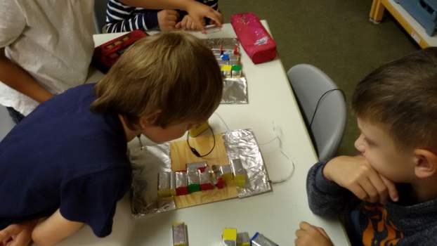 In dieser Woche durften alle Klassen der Schule das „Amberger Strom- und Energielabor“ in der Lernwerkstatt besuchen und ihre experimentelle Geschicklichkeit unter Beweis stellen. Folgenden Forscherfragen wurde nachgegangen: - Wie bringe ich eine Stromwanze zum Leuchten?- Lässt sich ein Salz- und Pfeffergemisch mit Hilfe eines Plastiklöffels trennen? - Wie baue ich eine Stadt der Erleuchtung? - Wie kann ich ein Papiermännchen fliegen lassen? Sicherlich hatten alle Schüler viel Spaß und hoffentlich konnten wir bei einigen Kindern die Lust und Neugierde zum Weiterforschen wecken!